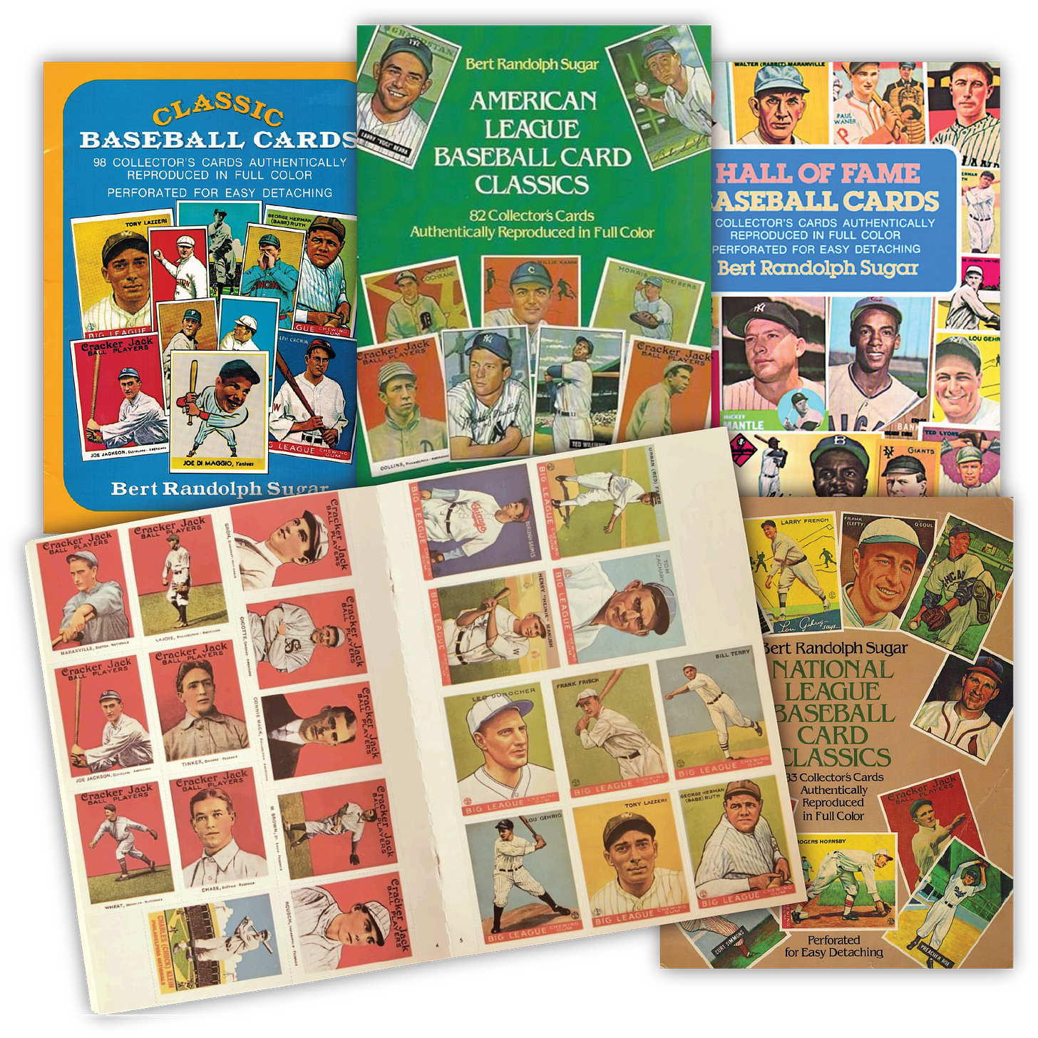 Dover Press published a set of books that had all these classic cards printed on cardstock and perforated so they could be taken out like real baseball cards. I got my hands on all the books, first through those Troll Book Fair catalogs (my God – remember those!) at my elementary school, then directly from Dover mail order.