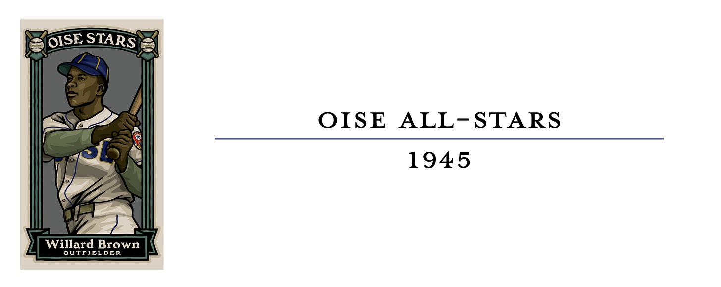 Willard Brown missed the 1944 and 1945 seasons while serving in the U.S. Army during World War II – but that doesn’t mean he did not play baseball. Willard teamed up with Hall of Famer Leon Day to star on the Oise All-Stars, an integrated army team. The Oise All-Stars advance to the 1945 GI World Series, where they met General Patton’s 4th Army Red Circlers team. While many of Oise’s players were former minor leaguers and semipro players, the Red Circlers team was stocked with all major league stars. But despite all odds, Oise beat Patton’s team for the European Theater Championship, and it was Willard Brown’s powerful bat that helped get them there.